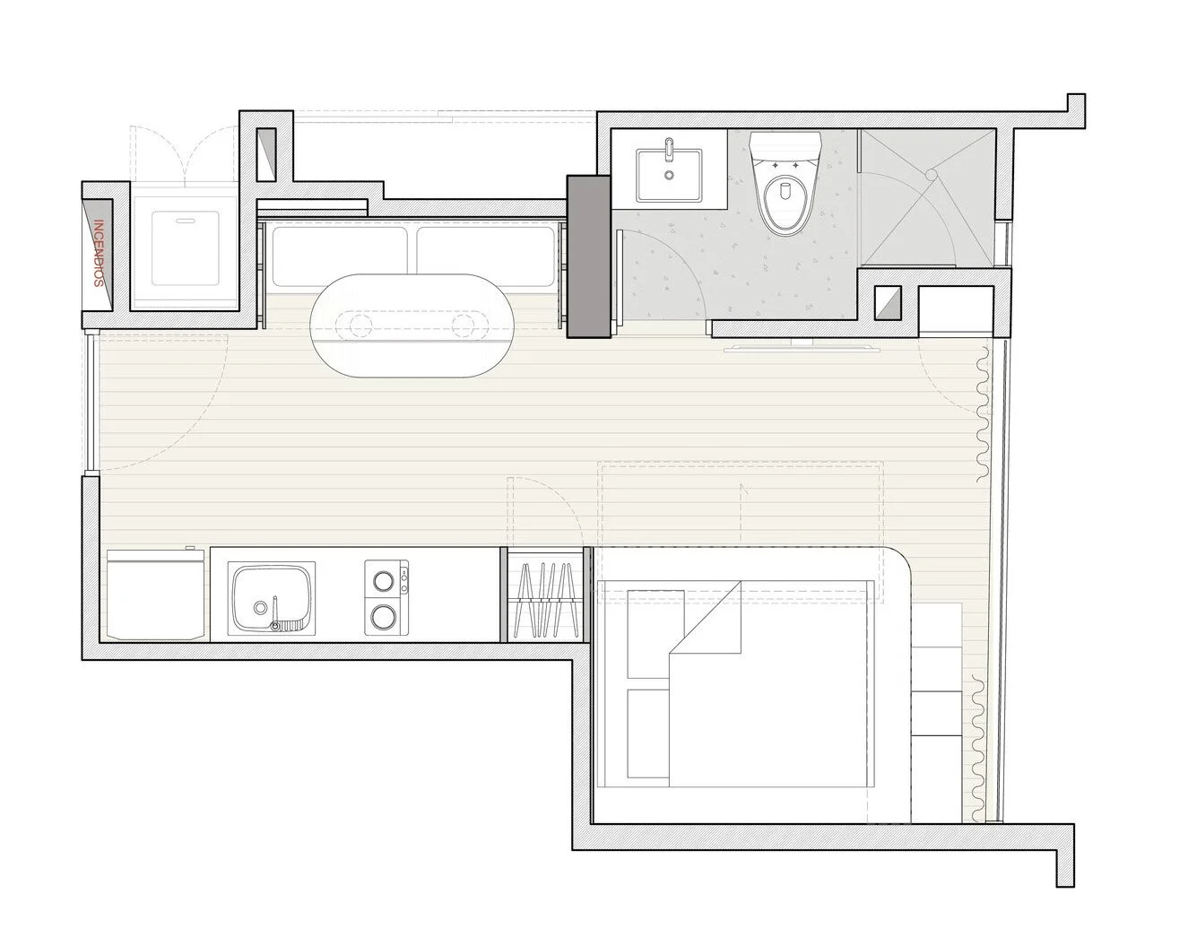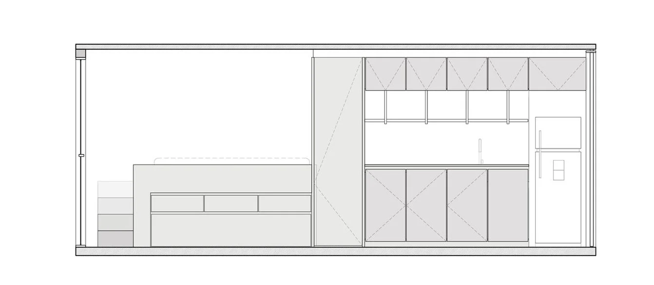 In Bogotá, micro-living started to become more popular as of 2019, with a different dynamic from the rest of the world: the spaces are bought as an investment and not a property for the buyer's own use; buyers will lease the spaces for short stay rentals through platforms like Airbnb. The intention for the project was to innovate upon the “micro” space with efficiency strategies, using modern and eye-catching finishes that transcended time and taste, so that any renter could enjoy it. The appeal of the project was both aesthetic and functional, accentuating the pleasantness of “tiny living” to the temporary inhabitant.